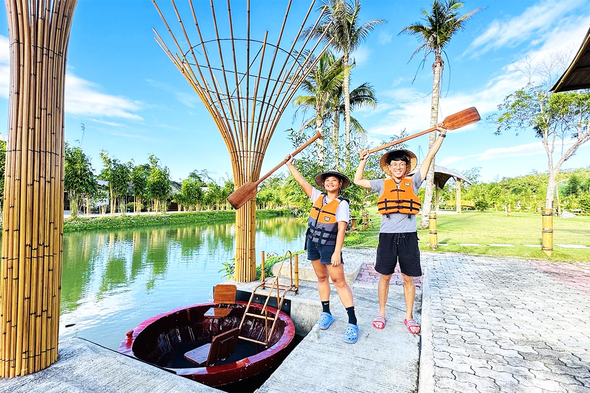 【竹園秘境】菲律賓以海洋生態聞名但不只是有原始海洋生態的菲律賓,森林資源更是目不暇給,接下來讓我們慢下腳步,帶您走入竹林中的世外桃源。竹園秘境2023年才開放的全新景點,是座以竹子為主題的森林公園,同時結合自然人文和傳統藝術帶您認識竹子的美麗和多樣性。園區腹地17公頃,種植了40種竹子。踏進大廳開始,藝術風格的竹子建築更是讓你馬上進入竹林七賢的世界,導覽員沿路介紹著竹子的應用和種類,以及如何運用在我們的生活之中,漫步於充滿綠意的竹園中,舒緩一下在城市中的壓力。園區內除了竹林造景外,包含了河流和小島,竹造的橋之間連通彷彿一座又一座的綠洲,穿梭在小島之間除了賞竹、賞山、賞河,更可以看看園區內的孔雀以及兔子園區。若已經拍完照片,想體驗相對動態的活動,可以自費玩玩園區內的椰糖船(每艘船$400P,約20分鐘),像是越南的桶船,但您可以自行划槳,並和您所愛之人以不同角度觀賞稍早之前參觀的小島之間。有水上行程,也有陸上活動,自費吉普車體驗可以試駕並穿梭於竹林間。