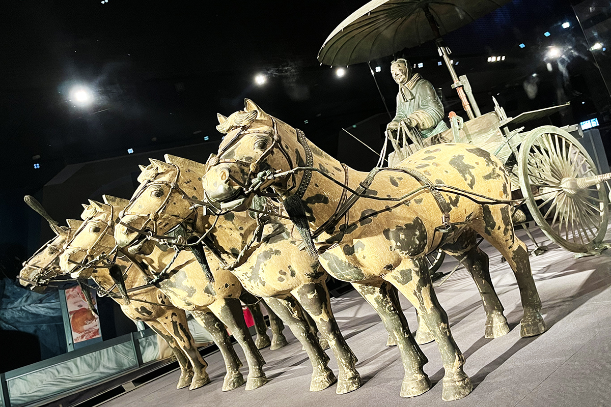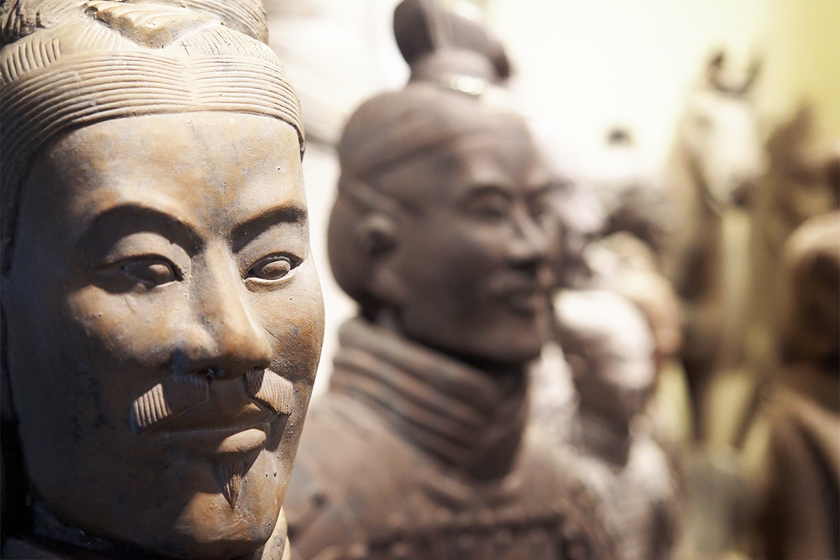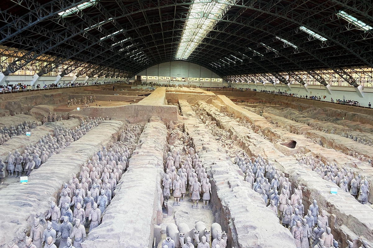由三個主坑組成,總面積約2.5萬平方米,埋有八千余件真人大小的陶俑、陶馬及戰車,生動再現了秦代軍陣的雄風。陶俑平均身高1.8米,面部特徵、服飾細節均獨一無二,部分青銅劍採用鉻鹽防銹技術,兩千年不鏽。987年被列入世界遺產,是研究秦代軍事、社會及科技的重要實物資料。