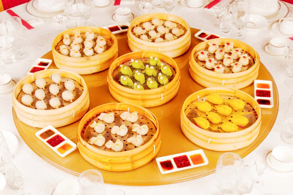 餃子宴~歷史淵源可追溯至唐代“燒尾宴”中的“二十四氣餛飩”(即早期餃子)。融入有機蔬菜汁彩色面皮,造型如金魚、彩蝶等,餡料涵蓋海鮮、素齋等多元口味。