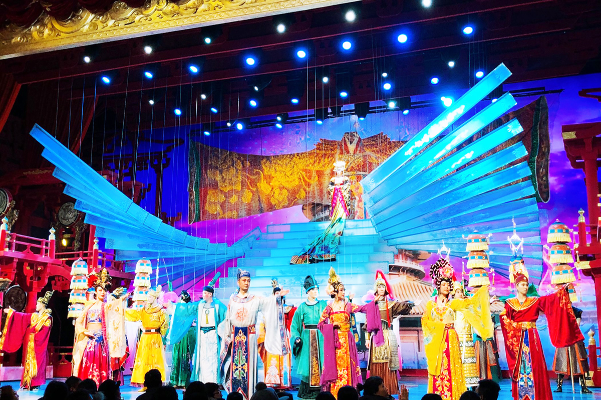中國首個劇院式餐廳,開創了旅遊演藝產業的先河,國家旅遊局列為來華遊客夜間文化生活推薦項目,在國際上享有“東方紅磨坊”的美譽。唐樂宮取意于唐代“五音八樂”和“歡樂殿堂”之雙重含義,其豐盛的美酒佳餚、絢麗多姿熱情洋溢的仿唐歌舞,將中外賓客仿佛又帶回到夢幻般的盛唐時代。唐樂宮累計服務超過1500萬人次,接待過120餘位國家元首及政要,包括日本首相和英國女王等。
