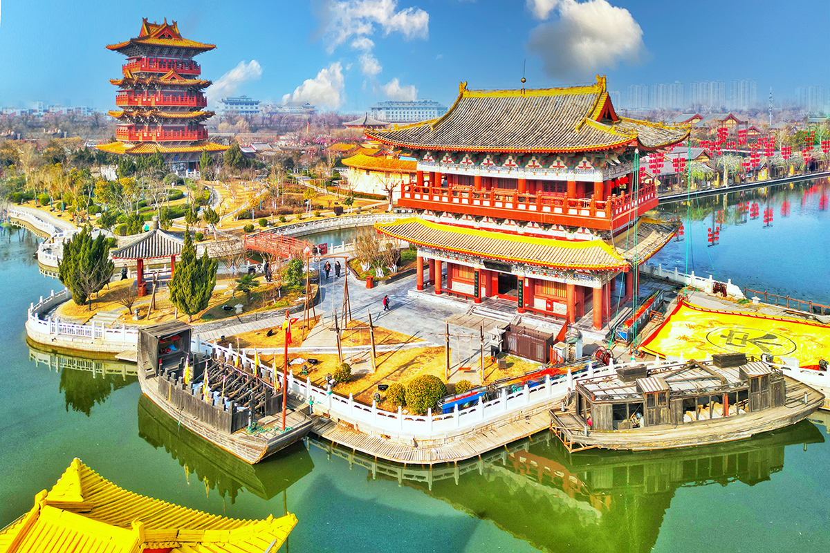 以北宋畫家張擇端的名畫《清明上河圖》為藍本建造的大型宋代歷史文化主題公園。園區占地600餘畝,其中水面180畝,完整再現了北宋汴京的繁華盛景。園內虹橋飛架、汴河蜿蜒,400余間宋式房屋和50余艘古船構成中原地區最大的宋代古建築群。遊客可觀賞《包公巡漕》《嶽飛槍挑小梁王》等實景演出,參與拋繡球、招婿等互動體驗,還能品嘗灌湯包、羊肉炕饃等北宋風味小吃。