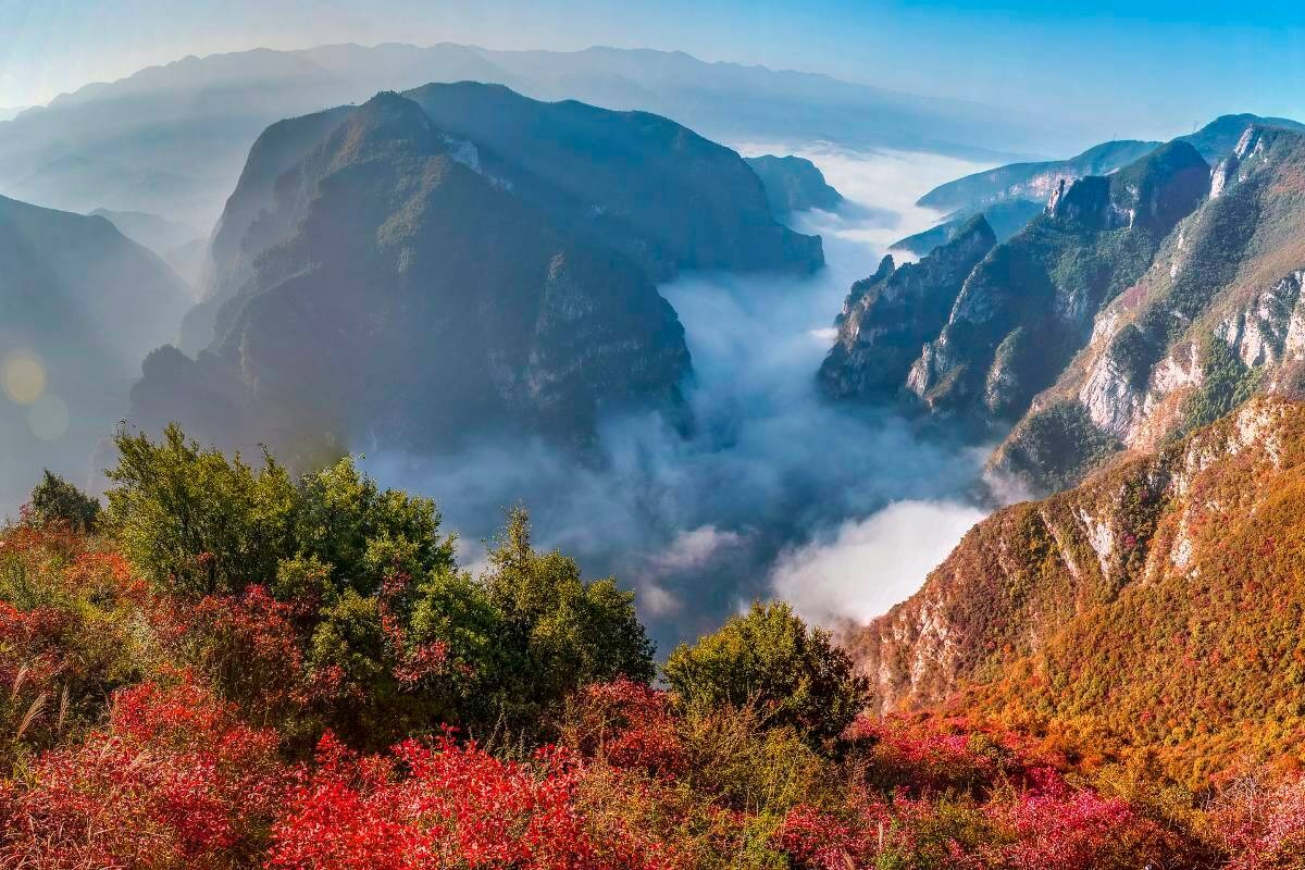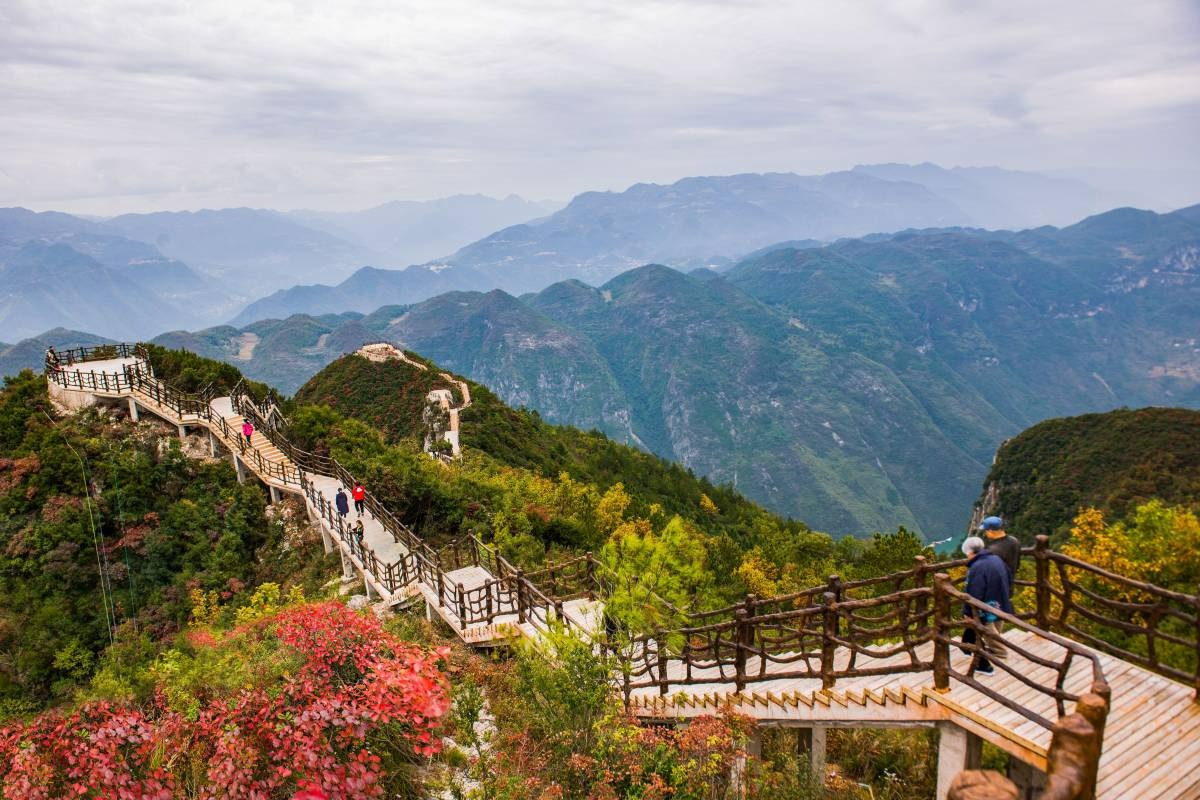 巫山「神女天路」是一條穿行在巫峽雲巔的景觀大道,讓遊客能以「上帝視角」俯瞰碧綠長江與對岸神女峰的絕美身姿。您可以選擇乘坐觀光車的經典線,輕鬆抵達各個攝影平台;或選擇健行線,踏上穿行於林間的紅葉步道。每到深秋,漫山遍野的紅葉如晚霞般鋪滿峽谷,與碧水青天交織成畫。步道門票通常已包含在景區首道大門票內,讓您能親自走入那片火紅之中,近距離感受巫山紅葉的浪漫與層林盡染的詩意,是徒步愛好者與攝影玩家的夢幻天堂。