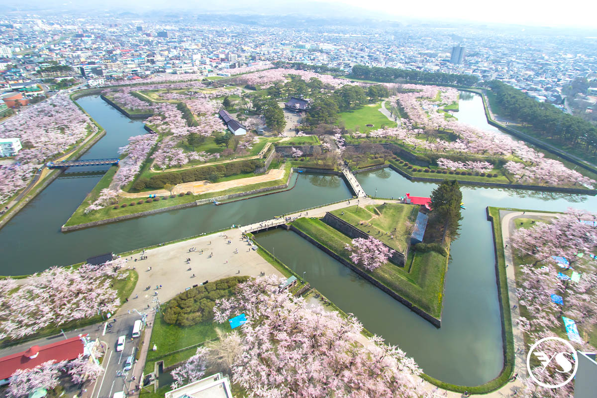 【五稜郭公園】來到函館的地標-五稜郭公園,五稜郭以造型非常獨特的星狀碉堡聞名,明治維新時期支持幕府人士,抵抗天皇軍隊最後一站(箱館戰爭1868~1869年)的發生地點,因此在日本近代史中佔有重要地位。