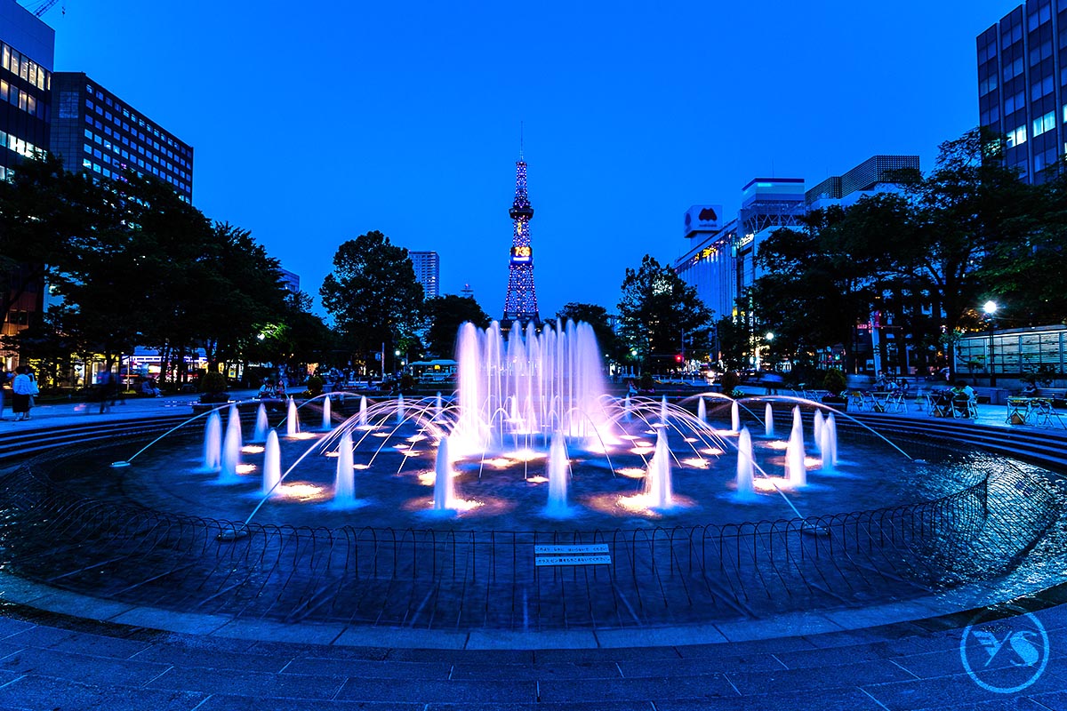 【大通公園】位於札幌的中心部位,是寬105公尺,全長共1.5公里的超大綠色活動空間,園內有噴水池、紀念碑、文學盃等裝飾物。此公園四季綻放美麗的花卉,冬天則以照明的彩燈裝飾著。