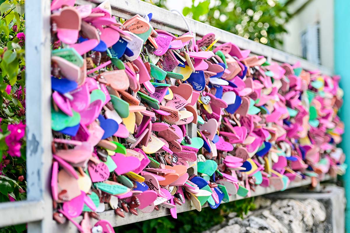 戀人岬&瞭望台:戀人岬擁有一座海天一色的瞭望台,可以觀賞菲律賓海及杜夢灣的全景視野,白天壯闊晚上浪漫,可說是到關島的必去景點!戀人岬有個浪漫又帶點悲傷的由來,傳說中很久以前有位美麗的少女與出身差距甚大的查莫洛青年相戀,並在家人的反對之下,兩人相約結髮於此,然後一同跳崖殉情。而附近有座情人鐘,相傳兩人攜手敲響這座情人鐘就能為愛情永恆祈福。