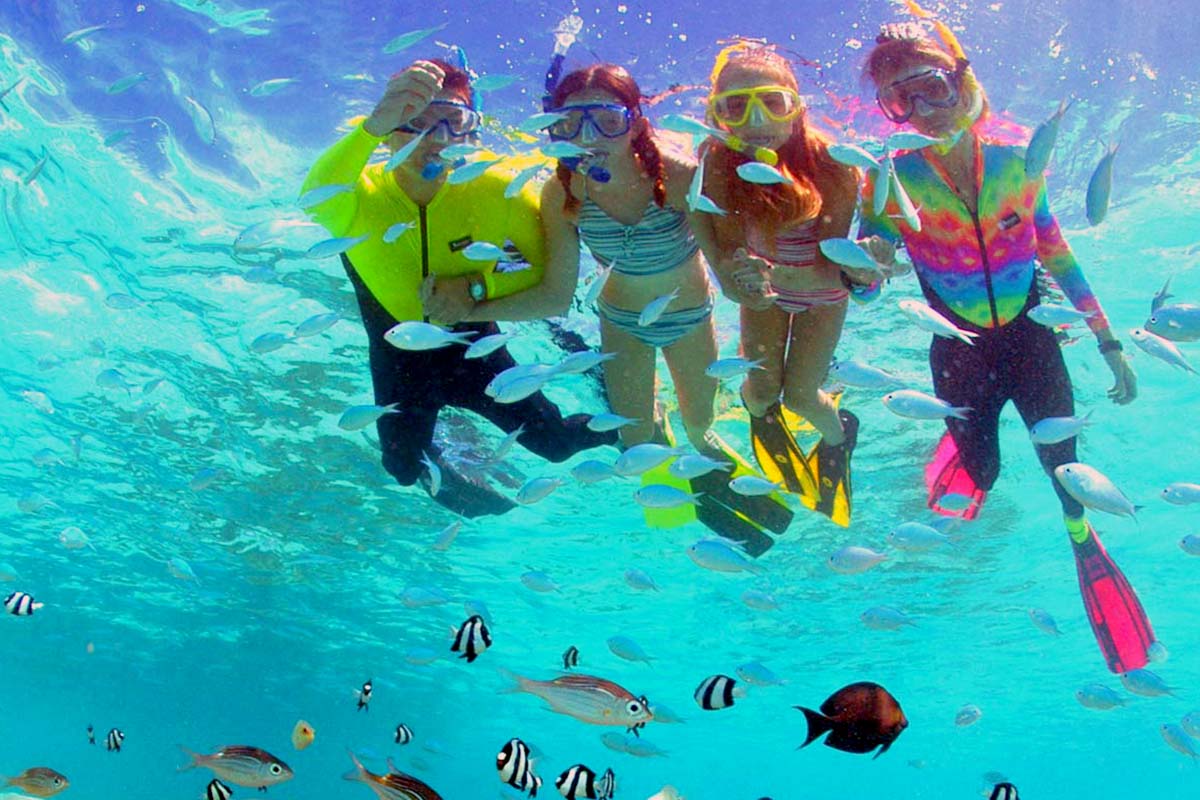 魚眼公園(海豚追蹤、魚眼公園海底瞭望台、魚眼公園自助午餐)本日搭乘豪華遊艇沿途開始展開追蹤海豚生態之旅,運氣好的話,您將可看到成群結隊的海豚,並直接感受這些可愛的海豚環繞在遊艇四周,頑皮嘻鬧且跳躍著享受彼此追逐之樂趣!並前往 (Fish Eye Marine Park)是一座天然的生態水族館,連接公園入口處與展望塔的280公尺細長木橋被稱為情人橋,沿著280公尺長的棧橋漫步,就可以一邊欣賞皮提灣潔淨、零汙染的美麗水域與海灣風光,藍天大海襯著橋上人來人往,不論在白天或是黃昏時分,都有一番特殊意境。展望塔往水面下延伸10公尺,四周環繞著與真正潛艇無異的大型玻璃窗,共有16片方形窗及8個圓窗,從每一個窗口都可觀賞到色彩繽紛,種類多達500多種的熱帶魚群,和各式各樣的珊瑚,置身其間如入海底龍宮。除此之外,陳昇的Summer MTV就是在這兒拍的,所以魚眼海洋公園一直是關島熱門的觀光景點。