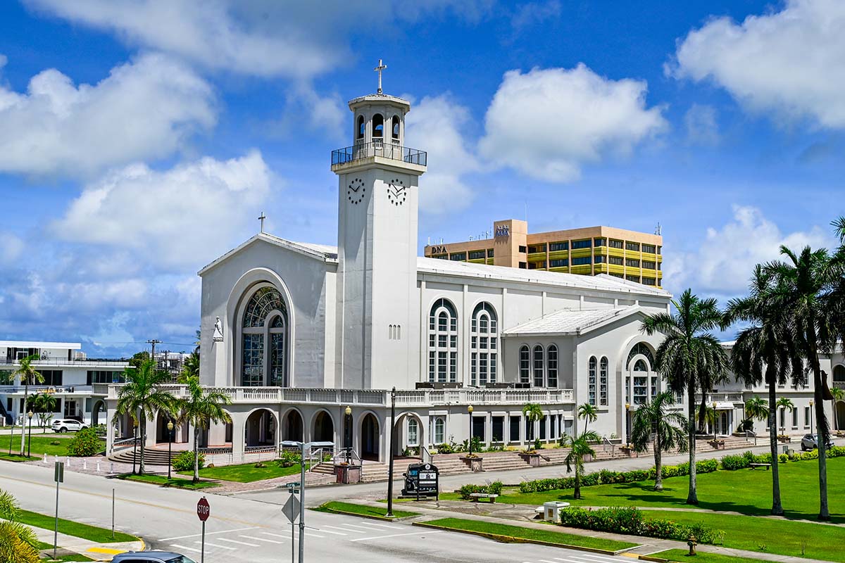 聖母瑪莉亞大教堂:位於西班牙廣場旁,白色高聳的聖母瑪莉亞教堂非常搶眼,是亞加納地區的地標。這裡原來是關島第一座天主教教堂,西元1669年由聖維多列教父創建,不過歷經戰爭與天災的侵襲早已毀損,現在的聖母瑪莉亞教堂是在1958年重新修建而成的。