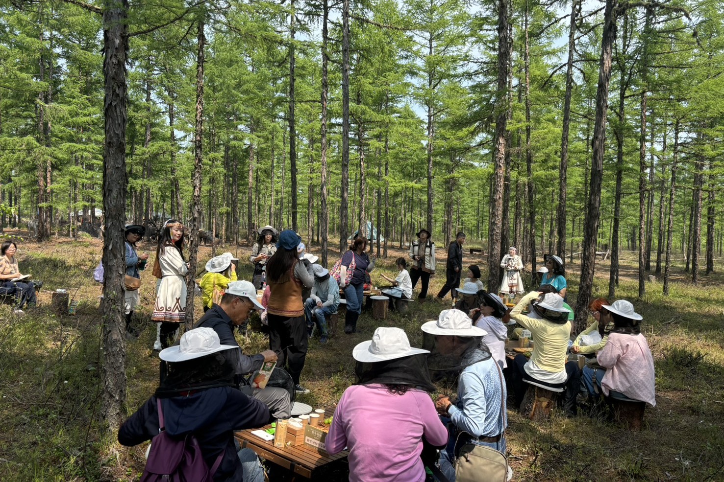 【15:30-16:30】探訪中國最後的狩獵部落—敖魯古雅,由度假大使講解注意事項;原始森林中馴鹿部落專場私享;與獵民互動聊聊他們與馴鹿的故事;零距離接觸馴鹿;森林定制茶歇