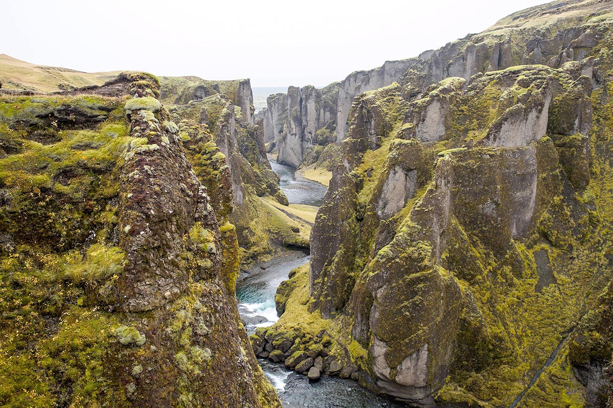 Fjaðrárgljúfur峽谷是冰島最著名的峽谷之一,以其令人驚嘆的美麗而聞名。Fjaðrárgljúfur形成於冰河時期晚期,大約9000年前,峽谷深約100米,長約2公里,其壯麗的懸崖、裂縫和穿過中心的費亞拉河 Fjaðrá River景緻美不勝收。