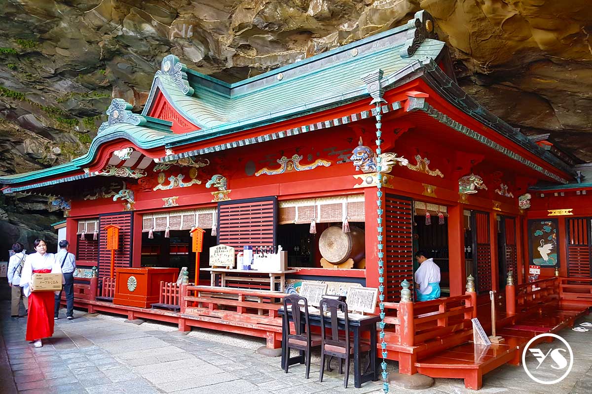 【鵜戶神宮】座落於日南海岸邊大洞窟中,位於面臨太平洋最突出之鵜戶岬前端,沿著嶙峋岩石中蜿蜒延伸的山道拾級而下,可見一朱紅色的殿宇座落在臨太平洋的崖洞之中,即為自古以安產、夫婦百年好合、結緣等聞名的鵜戶神社。鵜戶神宮有華麗的社殿供奉著海神,此外在海邊的斷崖下有許多海蝕的洞窟,在廣達一千平方公尺的範圍內,奇岩怪石林立。在山崖下的波浪中,有一龜形的岩石,據說若能把運玉投到龜背的凹陷處,所許的願望便能實現。相傳廟中供奉神武天皇的父王,同時這裡也是「鈴噹馬」故事發源地。來此參觀者多為新婚夫婦祈求婚姻幸福。