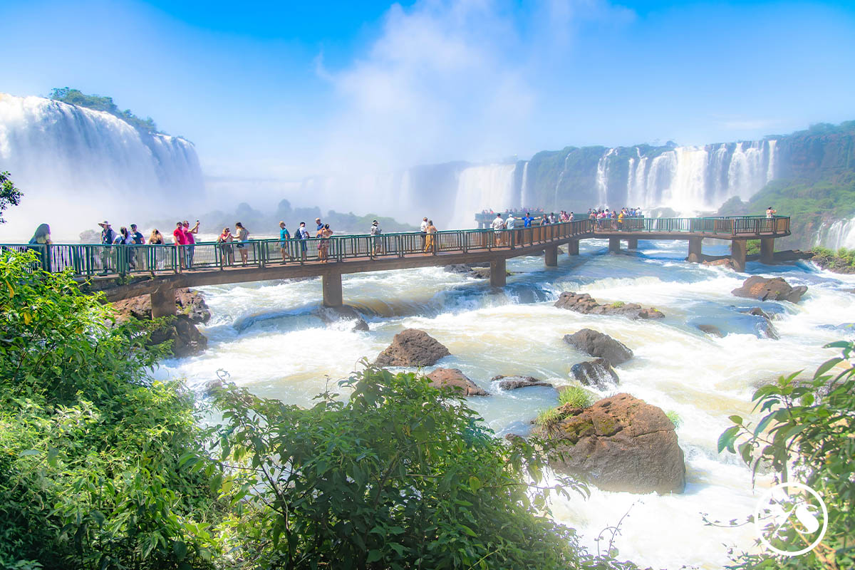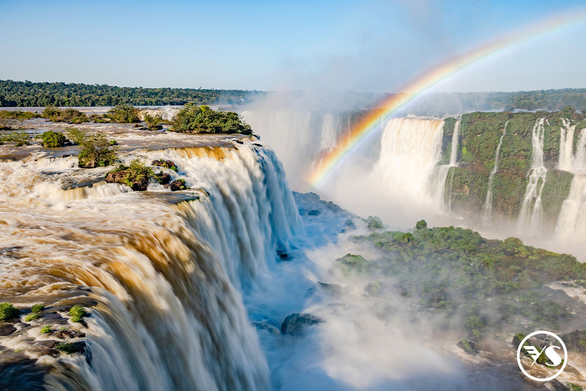 伊瓜蘇河是大自然最美的雕塑之一,被譽為「世界第八大奇蹟」。伊瓜蘇河發源於馬爾山脈,流經1,320公里,最終匯入伊瓜蘇。瀑布噴薄而出的水霧,點綴著美麗壯闊的彩虹,為遊客帶來一場聲色交織的奇觀。瀑布距離伊瓜蘇市中心20公里,其中8公里位於國家公園內。