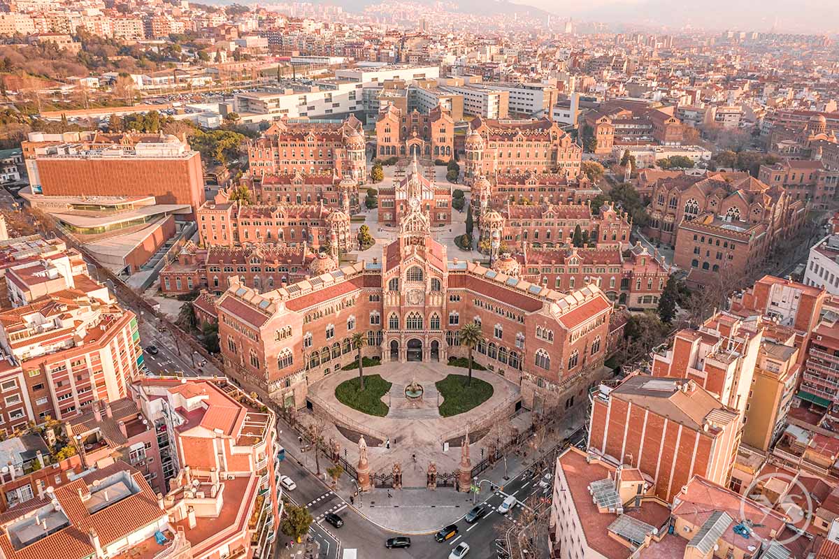 號稱「夢幻迪士尼般醫院」的聖十字聖保羅醫院,透過鵝黃、粉綠馬賽克花磚,陽光穿透彩繪玻璃灑入寬敞室內,抬頭隨處可見生動精緻的自然派雕刻藝術。這裡,醫院的佔地面積比聖家堂大很多,多明尼克根據當時最具創新性的身心健康理論設計了這家醫院,讓患者能夠享受到陽光充足的環境、新鮮的空氣和舒適寬敞的康復空間,醫療保健與美麗的藝術建築和清幽的花園雙管齊下,令病人身心都得到慰籍,有助他們加速康復,鮮艷的色彩和大自然都是絕佳的良藥。1997年列入聯合國教科文組織世界文化遺產。同時建築大師多明尼克更是啟蒙高第、普易居先驅的前輩老師,可同時欣賞兩位建築大師相互對比。