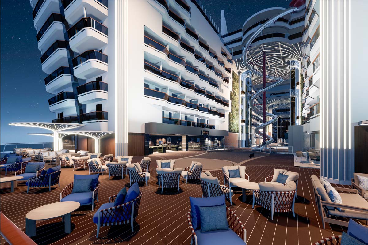 2026年12月全新下水 / 噸位215863噸 / 長度333.3公尺 / 寬度47公尺 / 高度77.15公尺 / 甲板樓層22層(遊客使用16層) / 電梯39座(遊客使用23座) / 最大載客數6762人 / 艙房數2626間 / 船員數約2138人 / 泳池7座 / 水療池13座