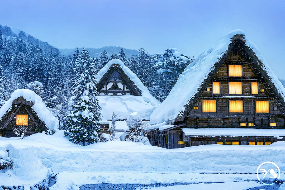 【白川鄉合掌村】世界遺產白川鄉合掌村因在深山之故,從古以來居民被大自然之天氣變化考驗而集智慧之結晶以稻草蘆葦合掌形之屋頂建築住屋來維持嚴東下雪天數多之安全。整個村莊都同樣之建築模型,幾百年完整保留下來,今人特別感到不同社會之情景。最古老的合掌屋是和田村家住宅,位於往荻町城跡的路上已有400年歷史。現存的合掌村歷史悠久更顯得彌足珍貴。