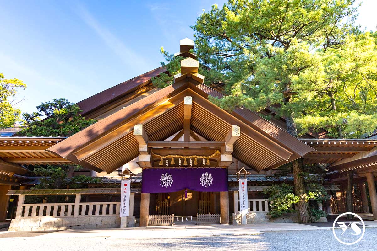 【熱田神宮】除了可欣賞著名的景點之外,其起源與日本神話有著深遠的關係,是一間充滿奇幻神話色彩的廟宇。熱田神宮祭拜日本三神器之一、也代表著武力的「草薙劍」,神宮裏更是供奉著代表權威和武力的神祗,因此自古以來,對日本皇室而言,熱田神宮是繼伊勢神宮的重要神宮,也是日本最重要的神宮之一。熱田神宮創建時期不明,但熱田神宮除了是日本皇室的重要神宮,熱田神宮也受到當地居民的愛戴,日本第12代天皇景行天皇年間,地方上早已存在居民信仰,當地居民甚至親切的稱熱田神宮為「熱田san」。