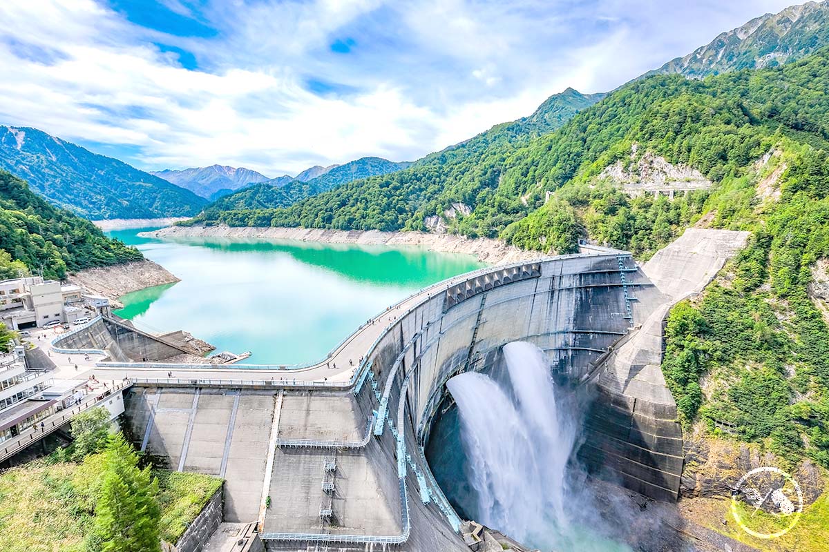 從春天的新綠到秋季的紅葉,一年中前來欣賞四季景觀的登山者絡繹不絕。黑部川上游的【黑部水庫】,蓄水量 2 億噸,高度爲186 米,是日本最高的拱形水庫,從水庫展望台看水庫放水,氣勢宏壯,使人百看不厭。高山道路沿途還有許多景點,如一塊巨岩構成的惡城壁以及落差 350 米、氣勢爲日本之最的稱名瀑布和盛夏時期仍湧冒著 2~5度泉水的室堂等,都令遊人讚歎不已。