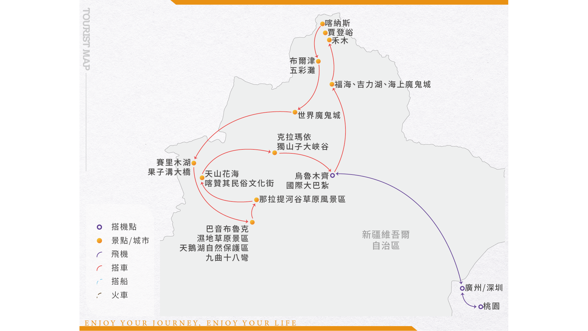 ※【溫馨提示】:新疆維吾爾族自治區和絲路的作息時間晚中原時間2小時(時區的關係),但全中國統一為一個中原標準時間,旅程中的作息時間貴賓們請依照導遊宣佈的時間進行。