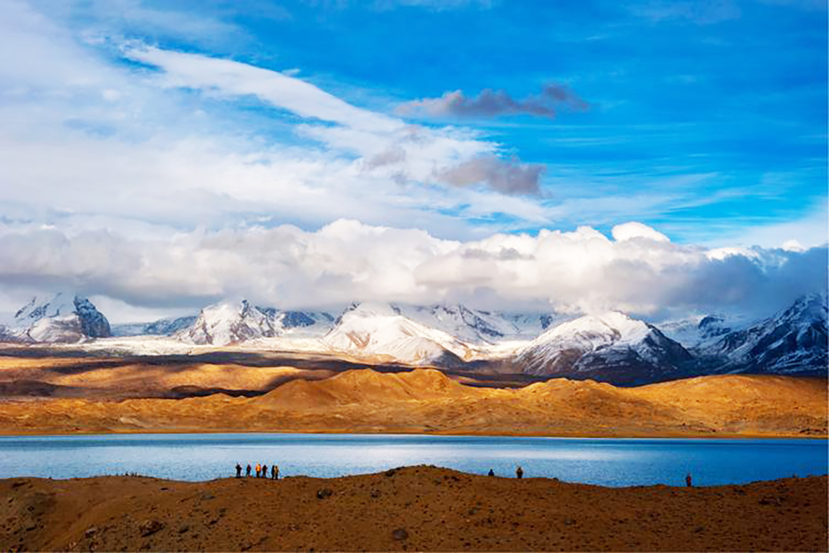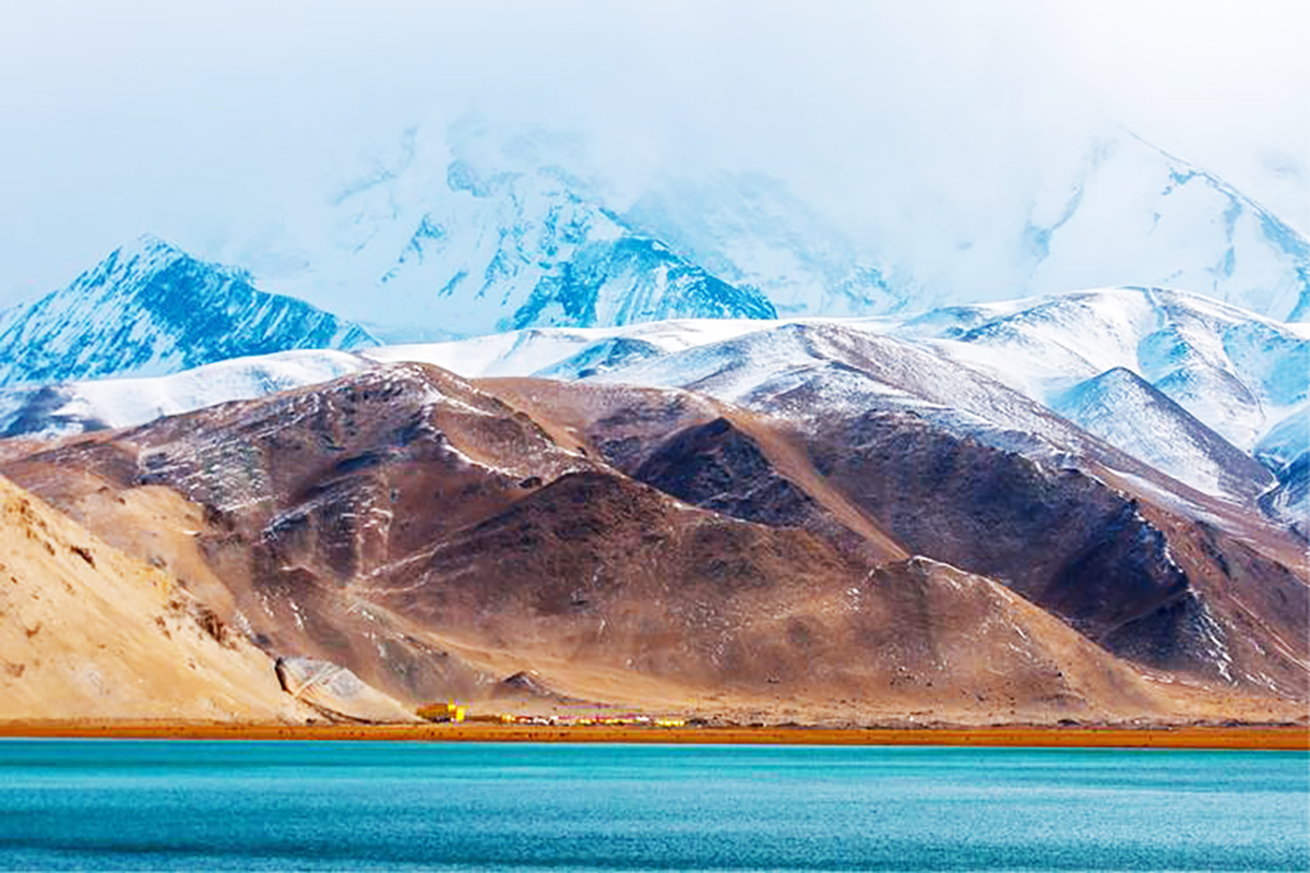 帕米爾高原上的一顆明珠,位於新疆阿克陶縣布倫口鄉,海拔約3300米。這裡雪山、白沙、碧湖交相輝映,景色如詩如畫,被譽為“帕米爾高原最美湖泊”。湖水清澈見底,倒映著雪山與白沙山,形成“一半湖水一半沙漠”的奇觀。