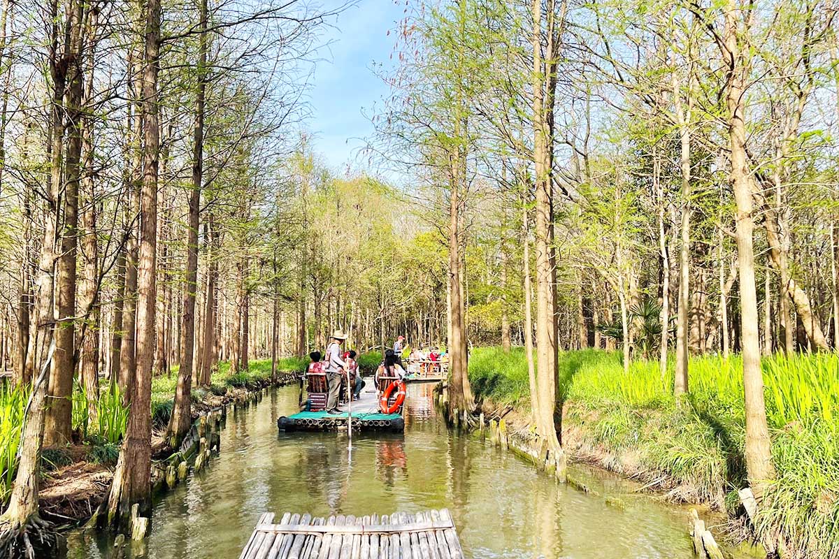 黃海森林公園的觀光車,便一頭紮進了流動的森林畫卷。車身緩緩穿行,窗外是萬畝水杉織就的綠海,陽光透過枝葉篩下碎金,落在林間薄霧上,暈開朦朧光暈。途經濕地長廊時,白鷺驚起掠過水面,濺起的漣漪驚碎了杉林的倒影;行至知青林,挺拔的樹木仿佛仍在訴說墾荒造林的歲月故事。觀光車在迷霧森林、森林之眼等網站靈活停靠,無需費力徒步,便能將林海的壯闊、濕地的靈動盡收眼底,每一次轉彎,都是與自然的溫柔邂逅。