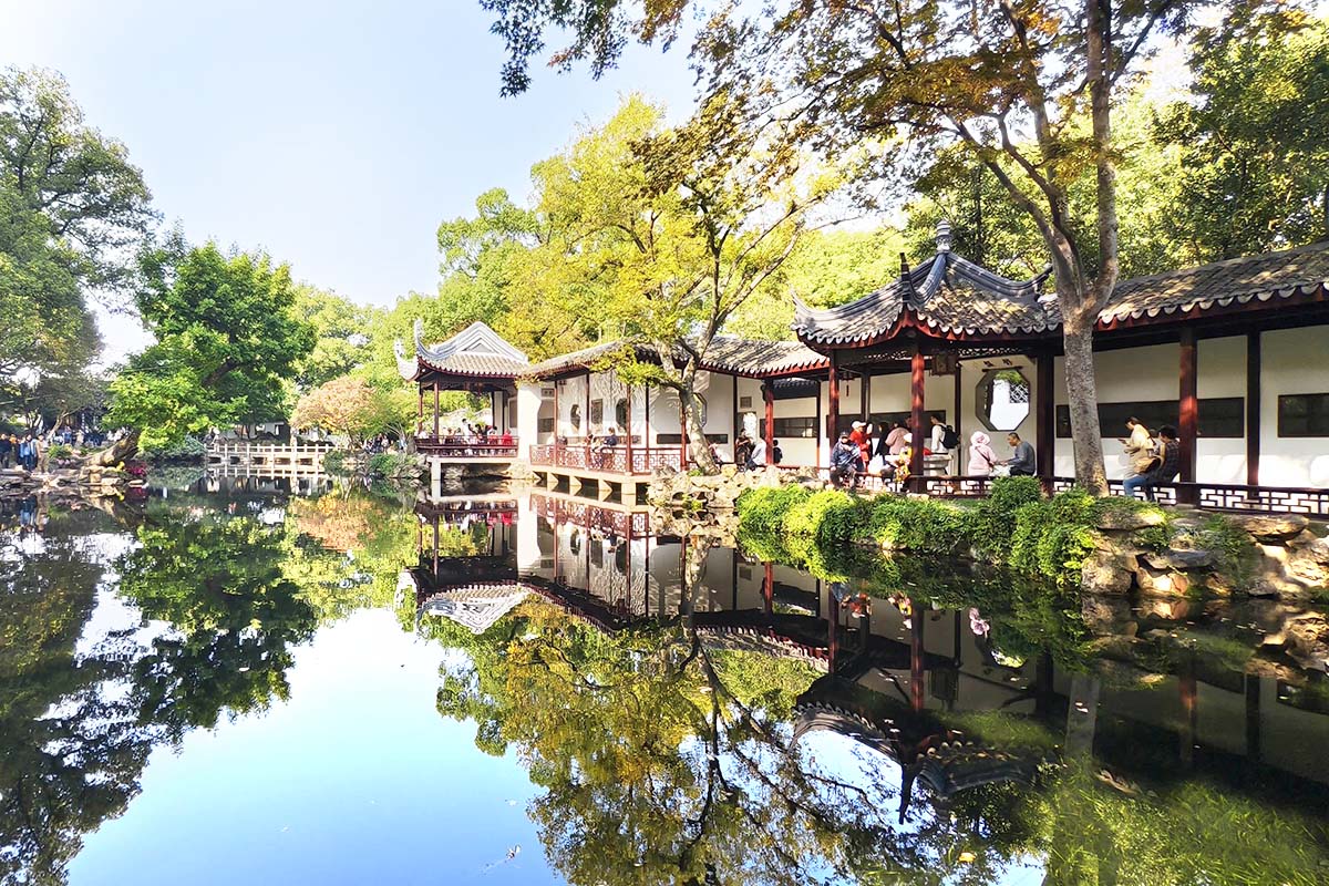 始建于南宋,初名“漁隱”,後幾經易主,乾隆年間定名“網師園”,寄寓著文人隱逸的雅致情懷。園內佈局精巧,以彩霞池為中心,亭台樓榭皆臨水而建。月到風來亭三面環水,中秋之夜可賞天上、水中、鏡中三月同輝;引靜橋小巧玲瓏,三步即可跨越,以小襯大盡顯造園智慧。還有被譽為“江南第一門樓”的磚雕門樓,雕刻精美,方寸間盡顯匠心。