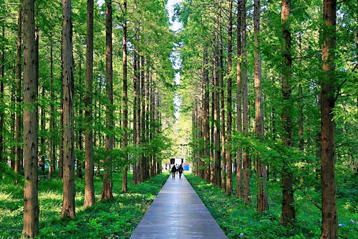 坐落于鹽城黃海之濱,6.8萬畝林海織就華東最大“天然氧吧”。乘景交車穿梭水杉長廊,兩側樹影如綠色瀑布傾瀉而下;漫步空中棧道,伸手可觸水杉枝葉,俯瞰層林盡染如打翻的調色盤;踏入迷霧森林,晨霧繚繞間恍入北歐仙境;濕地長廊上,看百鳥翔集、蘆葦搖曳。這裡四季皆有盛景,負氧離子裹著草木清香撲面而來,是逃離喧囂的治癒天堂。
