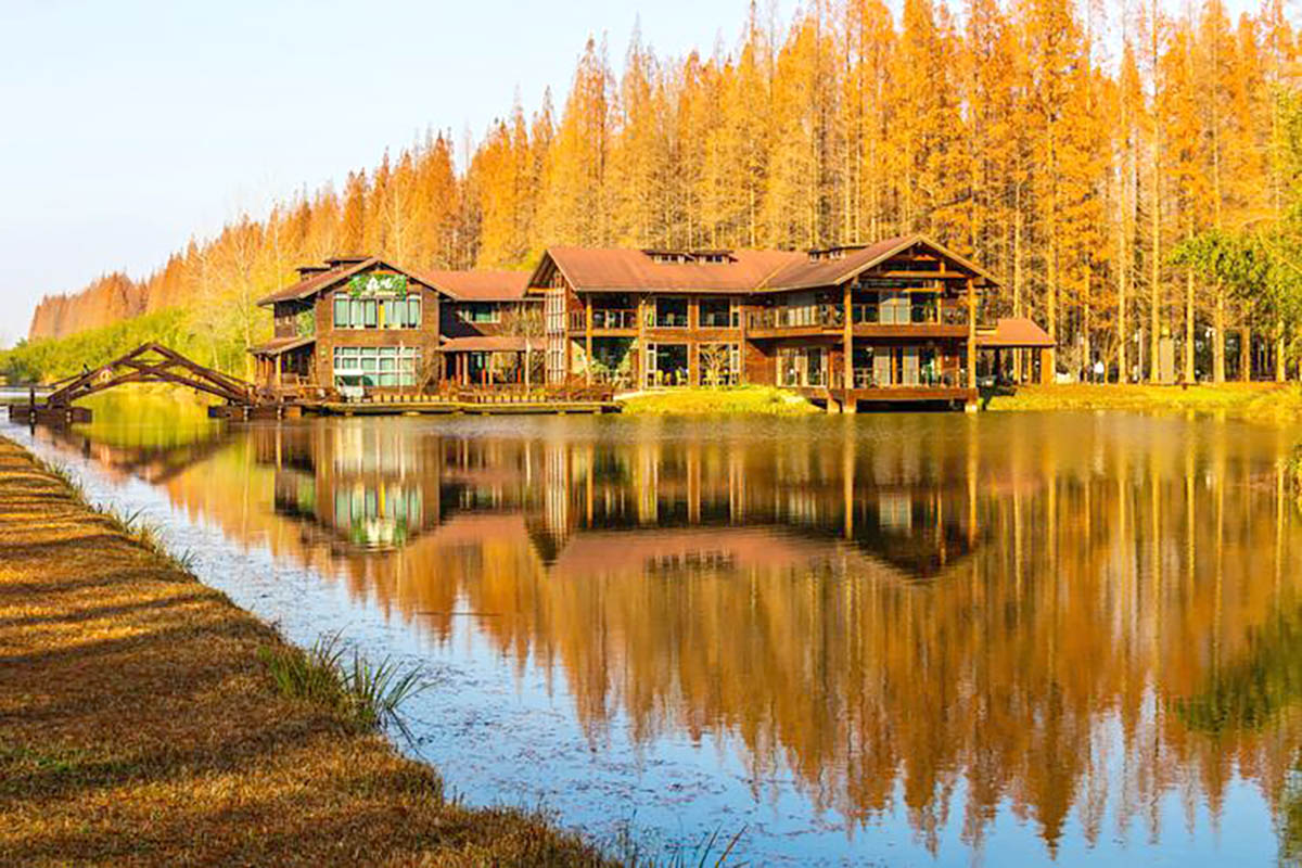 宛如上海東北角的一塊璞玉,在黃浦江的濤聲裡,暈染出都市中難得的自然野趣。全園1965畝土地上,1870畝森林肆意生長,這裡北園盡顯森林野趣,丘陵、湖泊、草地錯落有致,高大的水杉、香樟遮天蔽日;南園萬竹園則是江南水鄉縮影,小橋流水,竹影婆娑。春日裡,二月蘭織就紫色花毯,玉蘭潔白如雪;秋日時,層林盡染,五彩斑斕。