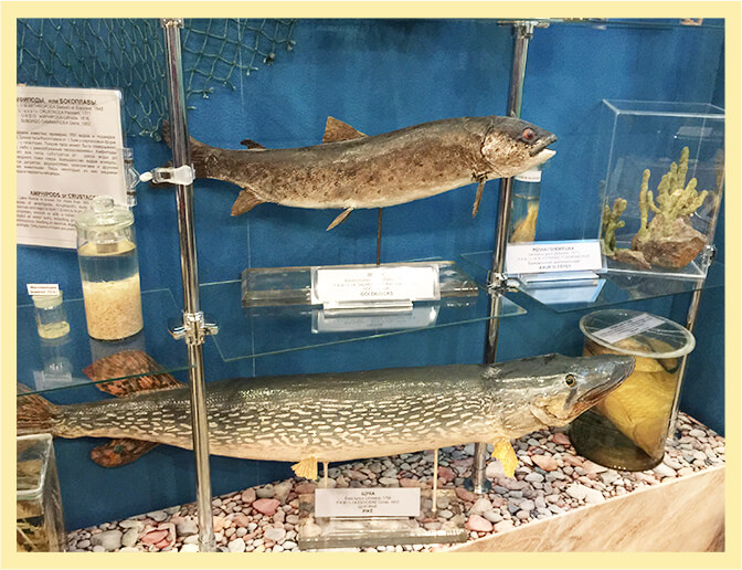 貝加爾湖生態博物館Baikal Museum─展示貝加爾湖自然發展史及陳述人類試圖征服貝加爾湖的奮鬥過程,一具火車模型緩緩道出先人篳路藍縷的創業精神,藉由展示品的導覽,可以更清楚明白貝加爾湖的生態及居住在湖中、湖畔各種生物習性並了解到他們相關的歷史(共有約3500種植物,其中2600種是貝加爾湖地區的特有種)。水族箱中可以見到貝加爾湖特有的歐姆魚及鱘魚。幸運的話還可以在透明魚缸中看到已被列為保護動物的貝加爾湖特有淡水海豹(nerpa),俏皮的模樣令人喜愛。