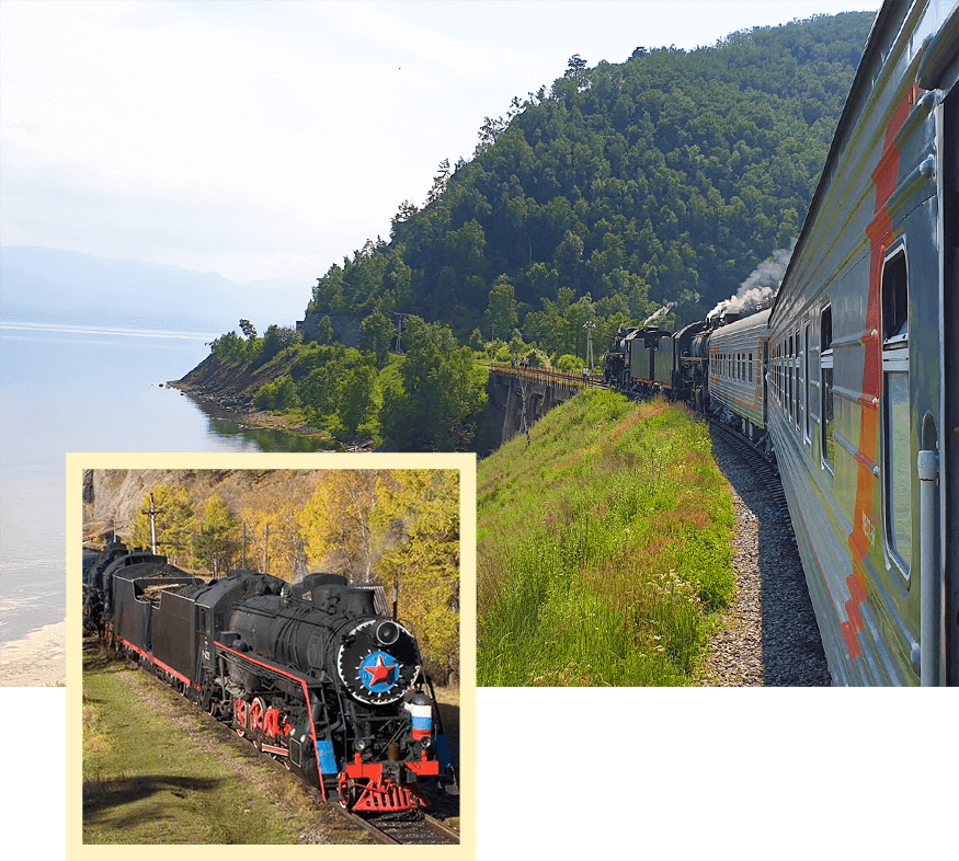 伴隨著鐵軌的聲響,車窗外不時飄過猶如童話世界般夢幻的森林和色彩繽紛的小木屋。沿途的景色是無法形容的美。火車在樅樹和其他各種樹木覆蓋的陡峭的山脈間繞行,一邊是湛藍的貝加爾湖,一邊是鬱鬱蔥蔥的樹林和連綿起伏的峭壁,原來風景還可以用這種流動的形式完美的呈現。