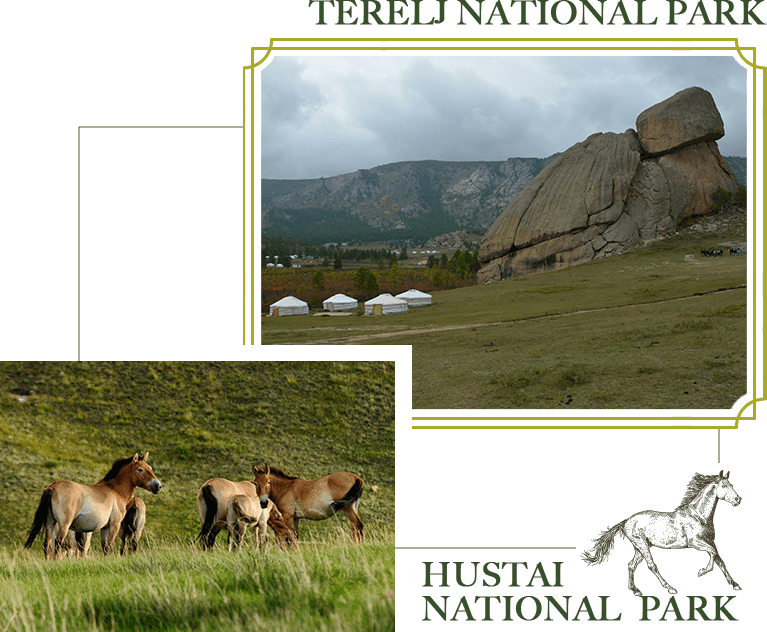 哈斯台國家公園Hustai National Park:東距烏蘭巴托90多公里,佔地五萬多公頃。因為野生蒙古馬瀕臨絕種,在國際保育人士極力呼籲下,由荷蘭政府出資,蒙古自然環境保護協會為協助單位,在哈斯台國家公園開始復育,成為全球蒙古馬研究重鎮。此地因有綿延不斷的山坡大草原,因此是瀕臨絕種的蒙古野馬最佳繁殖地。別小看蒙古馬的嬌小,牠特有的耐寒、耐熱又耐飢渴的特性,成為當年成吉思汗統一蒙古的秘密武器,進而運用牠而稱霸歐亞。目前全蒙古只剩下兩百多隻,共分為16群,每群約5-20隻,每群由一匹公馬帶領,為野生放養。除了野馬外,還可能會發現野狼、野鹿、老鷹等的蹤跡。在園區先由解說員在陳列館介紹蒙古馬,再特別安排國家公園解說員帶領著大家找尋野生的純種蒙古馬(因氣候及客觀環境因素,不保證一定會目睹到蒙古野馬的蹤跡。但這種追逐的過程絕對是不同的旅遊方式)。