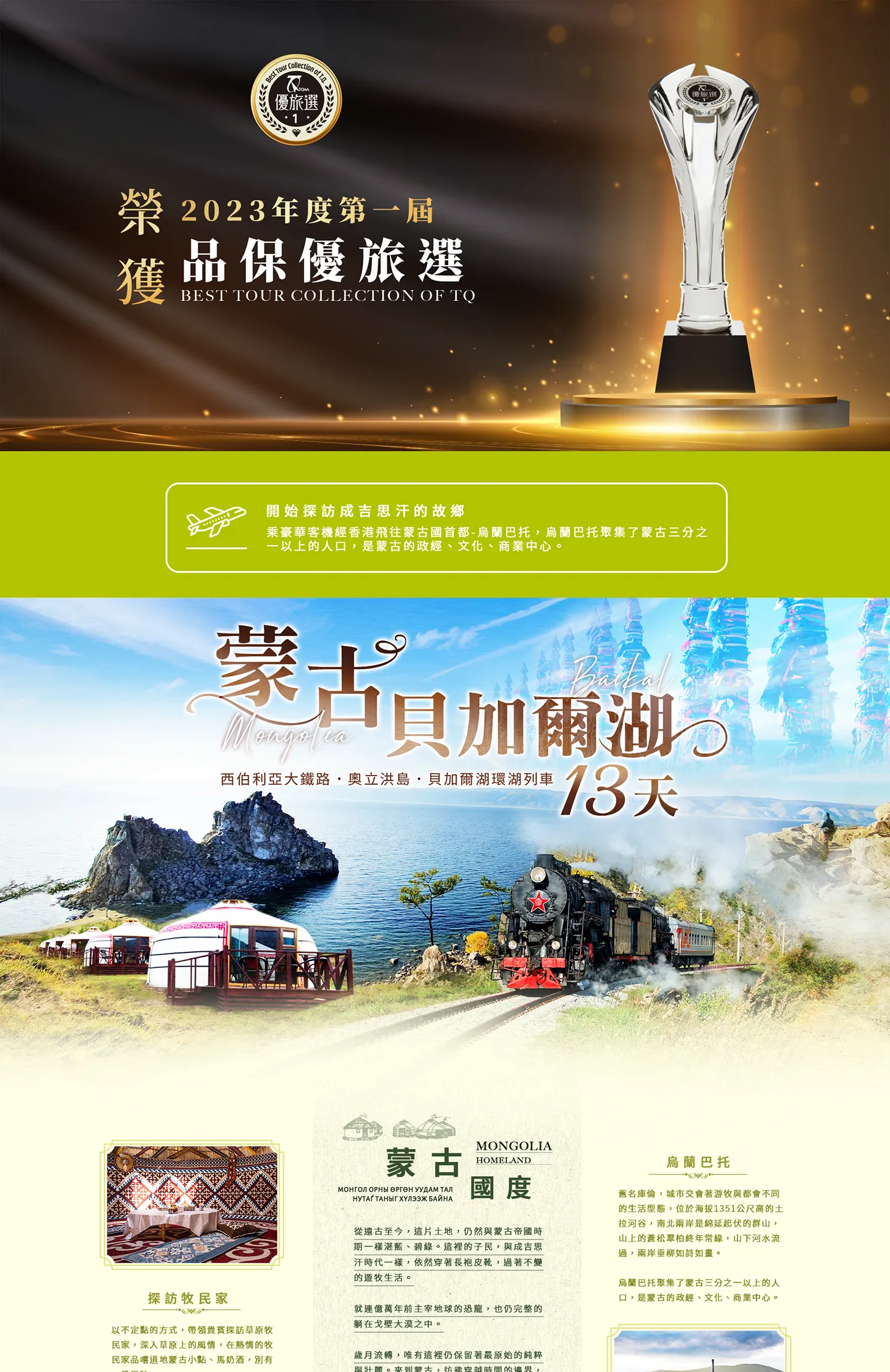 【特別提醒】:伊爾庫茨克飛往烏蘭巴托之航班時間均屬包機型態,飛行時間與班次以地方航空公司發布為主,將會視航班時間而調整住宿地點,特此在此說明,將依說明會資料為主。