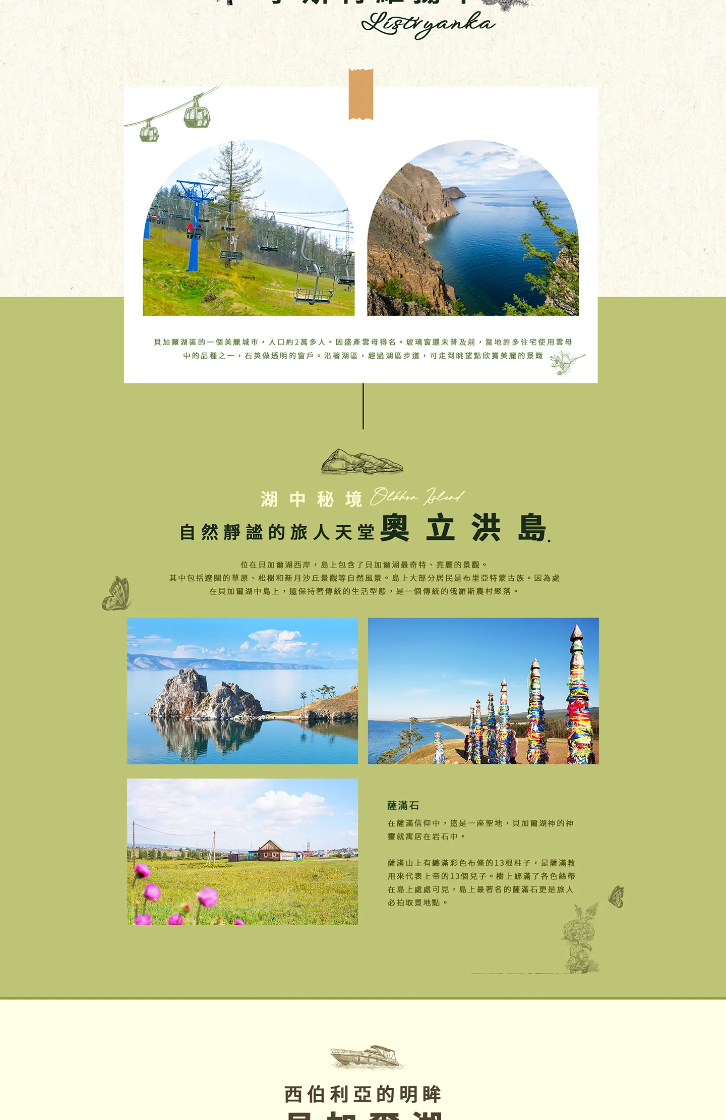 位在貝加爾湖西岸,島上包含了貝加爾湖最奇特、亮麗的景觀。