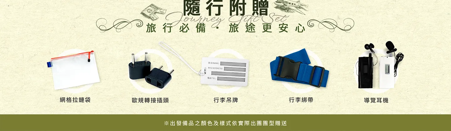 ※ 出發備品之顏色及樣式依實際出團團型贈送