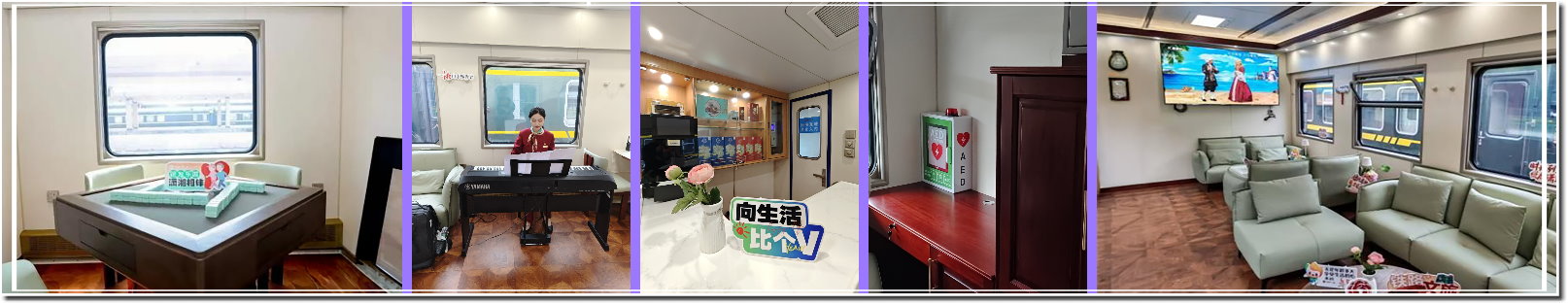 列車配有專門列車管家,功能車配有KTV、麻將室,列車配有專用餐車和專用廚師團隊