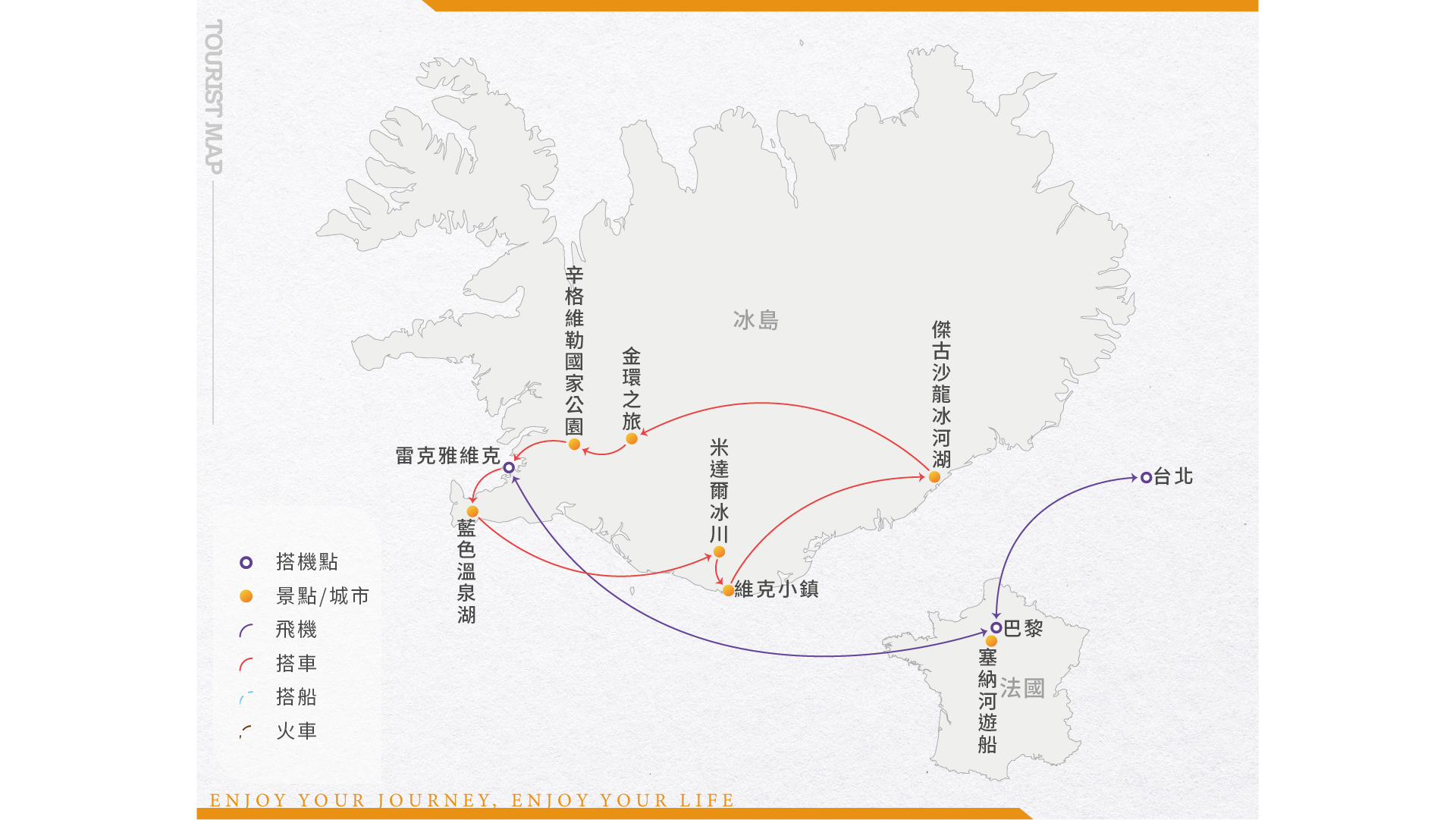 9. 機票自理或當地JOIN團體可扣除團體機票(含稅金).費用台幣35,000.元起(不含冰島段)。依出發日期略有漲跌幅,正確金額請洽當團業務。