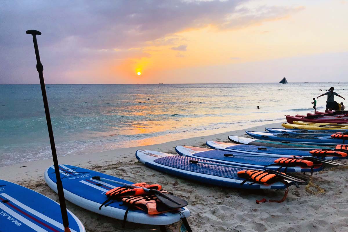 風帆:風帆船是長灘島的最佳象徵,各種顏色的風帆船,完全不用引擎整艘船靠著海風吹帆就能行走於整個海面上,搭配船伕適時控制風帆的方向,一直往無邊無際的大海前進,這時能躺在風帆的兩側感受輕盈的海風跟濺起的浪花望著遠方金黃色的夕陽,慢慢沉入海平面。(4人一艘)