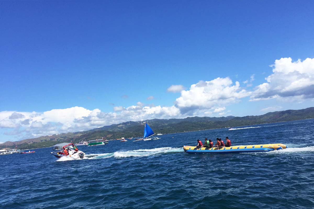 香蕉船:來到長灘島不玩一下當地最著名安全又刺激的香蕉船,在大海中的喊叫聲可以傳的極遠,咱們台灣人的尖叫聲可千萬不能輸給旁邊的外國人哦!(最少5人一艘約15分鐘)