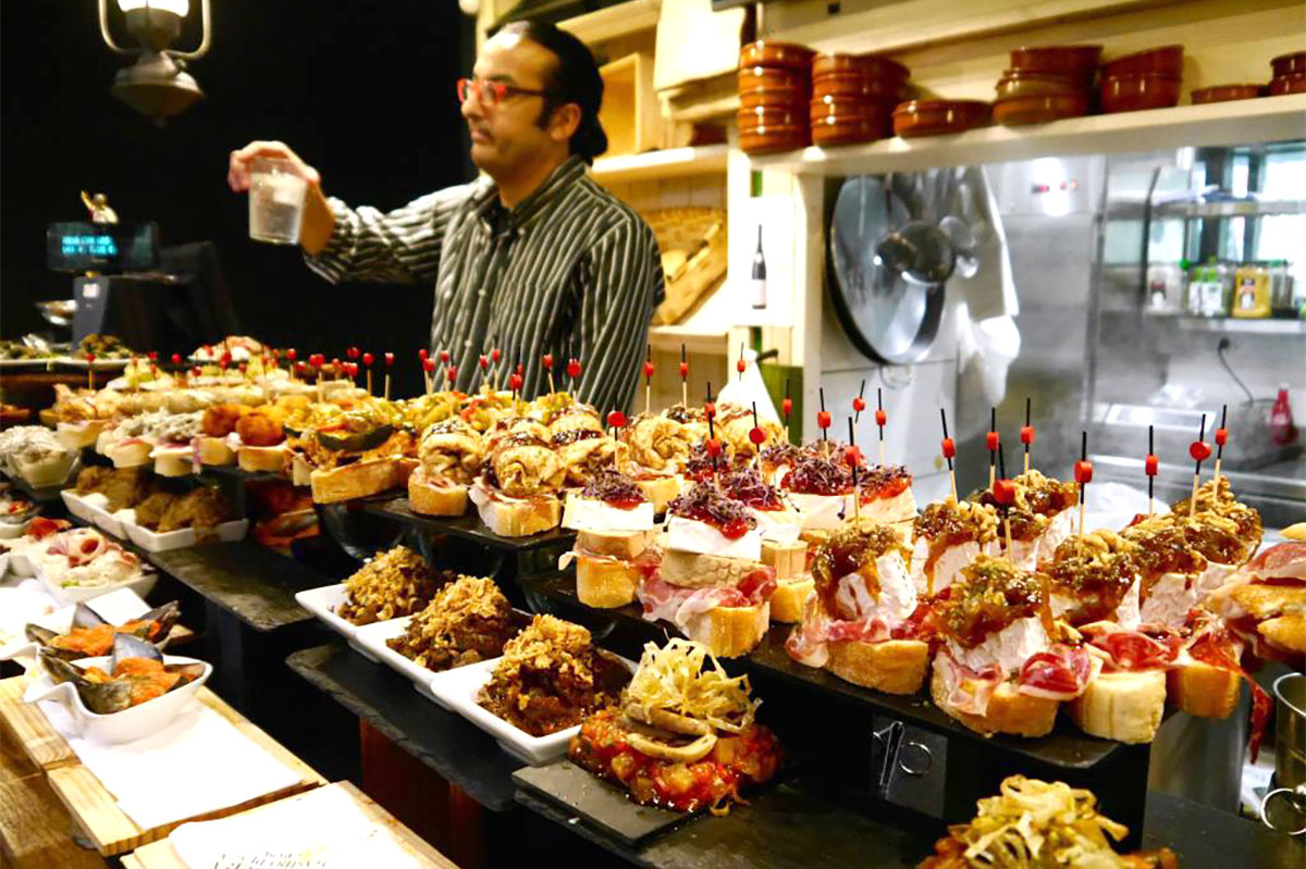TAPAS是從西班牙人特有的飲食習慣中,所洐生出的一種獨特「輕食文化」。盛傳以前酒館為了招待旅人歇腳,常在酒杯上放置一碟「輕食」如麵包等,以應付客人的胃口。後來此種食物已無法滿足漸漸地各式的配酒小菜漸漸搬上桌,TAPAS便由此傳產生。