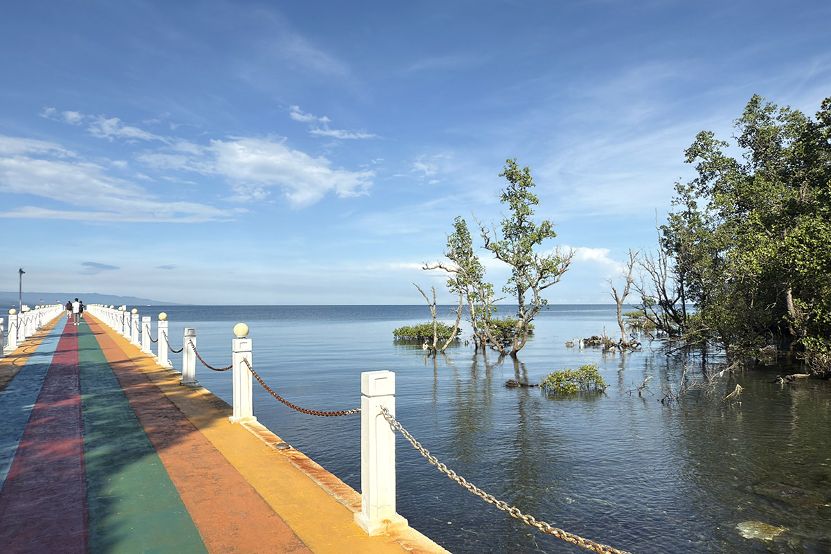 美娜多曾是荷蘭殖民地,因基督徒比例極高而被稱為「千教堂之城」。其中最醒目的地標是一座高約50公尺的巨大耶穌雕像,雙臂展開、衣袍飄揚,彷彿凌空飛舞。登上基座可俯瞰市區、海岸線與布納肯海域,視野遼闊,是拍攝全景的絕佳地點。