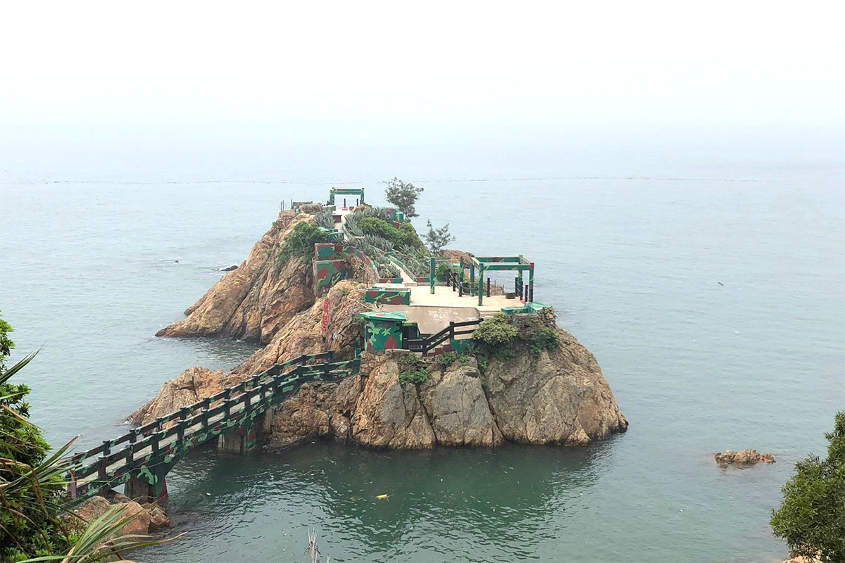 位於馬祖南竿島的仁愛村西側通往津沙之海濱車道下,神秘的海上碉堡,他們將岩礁挖空做為軍事基地,裡面的石室、廁所、廚房全都貨真價實,而馬祖唯一有軍階的狼犬就曾駐防在鐵堡