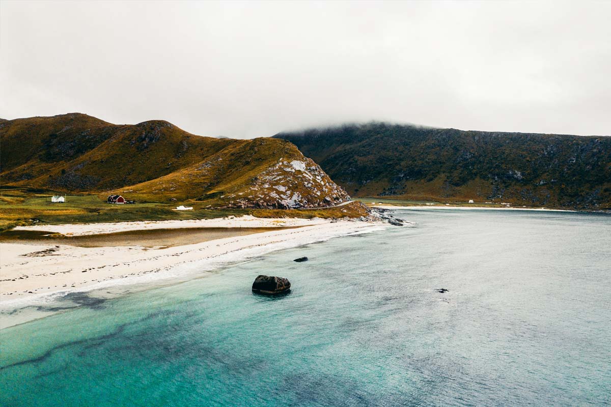 羅浮敦群島以擁有許多潔白美麗的白沙灘而為遊客稱許,許多沙灘甚至身處山間峽谷之間,需要費時徒步健行才能抵達,處處是秘境,但也有許多美麗的沙灘就在羅浮敦主幹道E10公路旁,可以輕鬆抵達,值得遊客下車造訪。