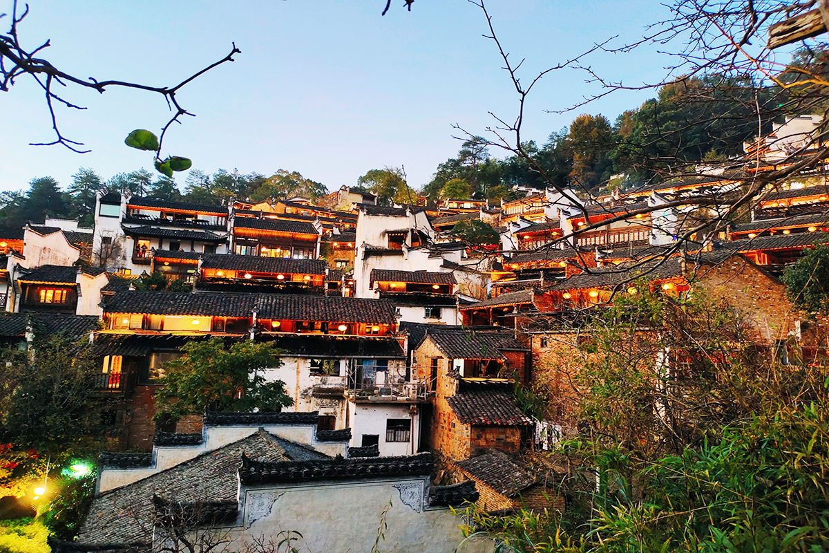 已有近600年歷史,現存100多處明清古建築,是研究徽派古建的重要樣本之一。白牆黑瓦的房子在綠色的山脈、樹木和清澈的河流背景下顯得格外突出,形成了非常詩意和平靜的風景。