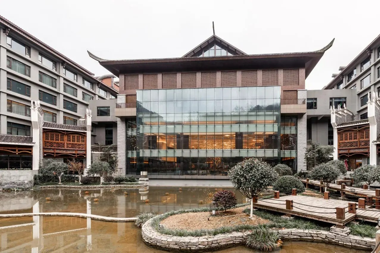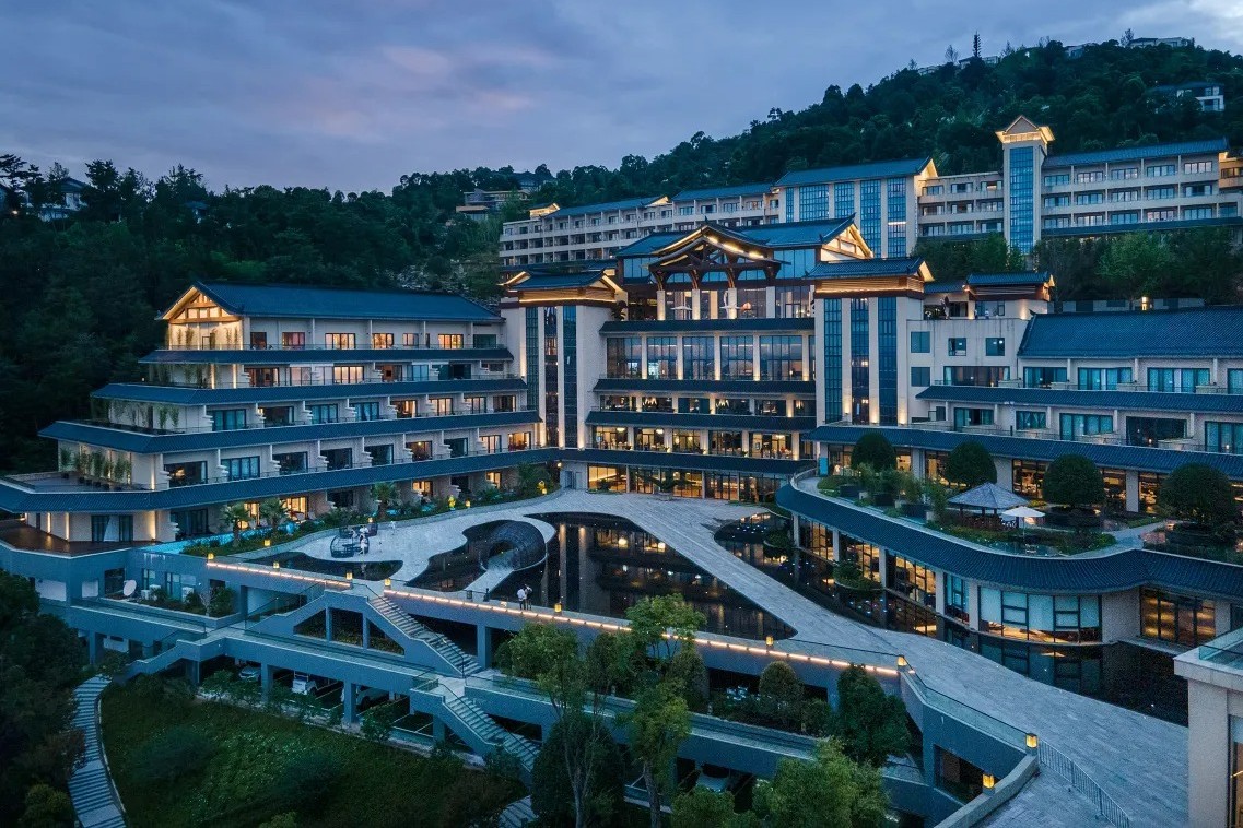 酒店於2022年開業,客房約198間,背倚南華山國家森林公園,緊鄰沱江下游,步行約五分鐘可達古城雲橋。度假村以天然富含氟偏硅酸的溫泉為特色,擁有68 個泡池及11 棟私密湯屋,環境寧靜、植被環抱,專為追求奢華度假與自然融合的旅客打造。館內設無邊際泳池、健身中心、親子樂園與多功能宴會/會議設施,適合家庭度假、浪漫之旅或商務團建入住。