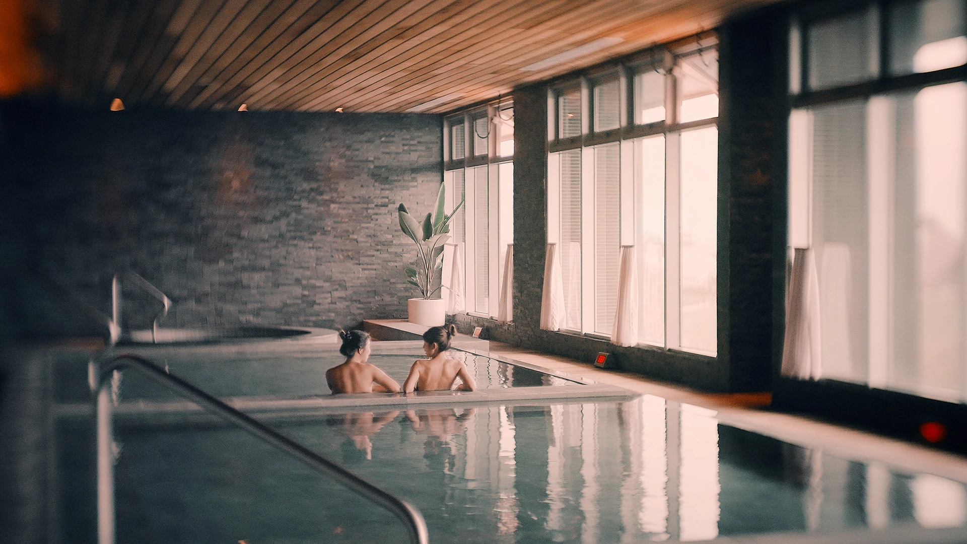 泡溫泉,是身體放下疲累與放鬆最直接的方式。 酒店鑿入地下 1300 公尺,將弱鹼性碳酸氫鈉泉帶上地面, 輔以岩材、香杉木、落地觀景窗,打造三池熱泉、一池冷泉、一個三溫暖的療癒場域。
