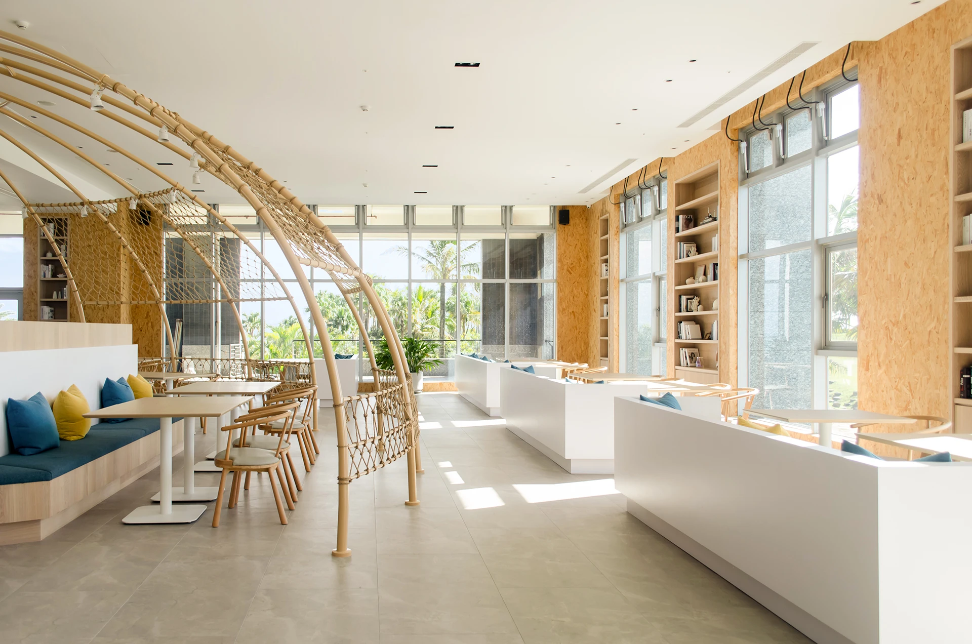 坐落於15米挑高大廳,大型木構藝術《遇見鯨奇》優游空中。午後沈浸於鋼琴與弦樂的優雅旋律,夜晚則化身為溫馨的星光電影院。在此伴隨特製啤酒與無酒精飲品,品味極致的視聽饗宴。在光影交錯的靜謐氛圍中,每一刻停留都是對度假生活最迷人的詮釋。